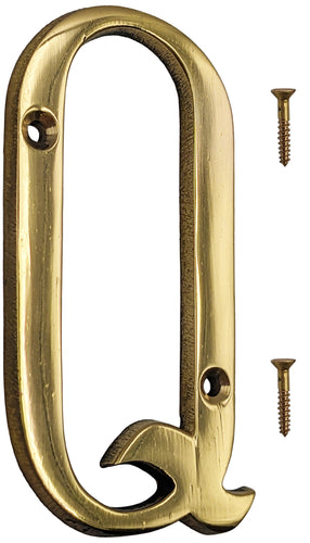 4-inch House Letter "Q" with Mounting Screws, Polished Brass, Shiny Gold Color, Suitable for Mailbox, Home, Apartment, Hotel etc