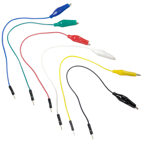 Set of 6 Alligator Clip to Male Jumper Pin Test Leads, 6 Colors (Green, Red, Black, Yellow, White, Blue), 8-inch Wire Length