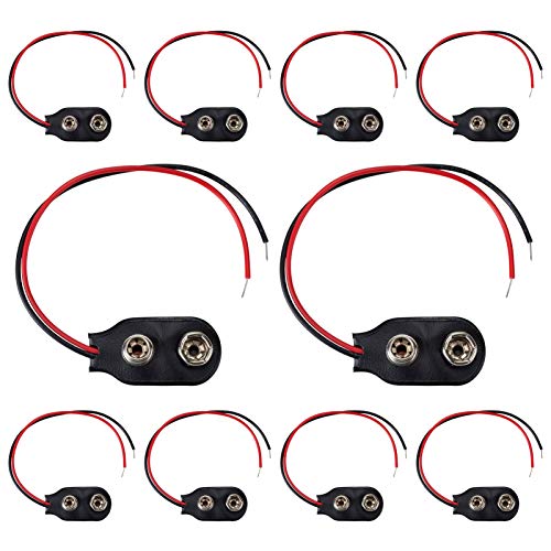 • 10 Pack I-Type 9V Battery Snaps, Red and Black Leads, 9 Volt Battery Connectors