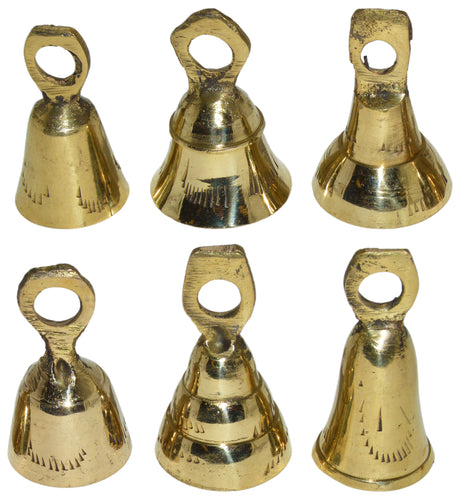 6 Assorted Mini Brass Bells with Loops for Hanging, Functional Decoration for Crafting, Door Chime, Wedding Chimes (Gold Color)