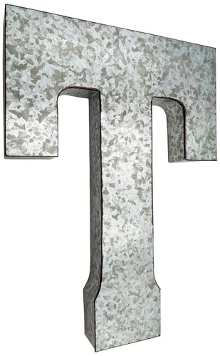 Huge 20" Metal Letter T Wall Décor, Silver with Rusted Edges, Galvanized Wall Mountable Decoration for Country, Mid-Century, or Farmhouse Theme