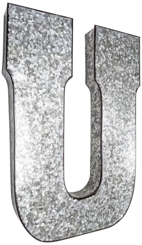 Huge 20" Metal Letter U Wall Décor, Silver with Rusted Edges, Galvanized Wall Mountable Decoration for Country, Mid-Century, or Farmhouse Theme