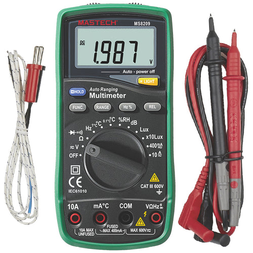 Mastech 5-in-1 Multimeter: Lux, Sound Level, Humidity, Temperature, DMM (MS8209)