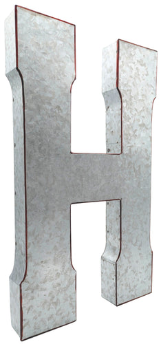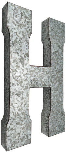 Huge 20" Metal Letter H Wall Décor, Silver with Rusted Edges, Galvanized Wall Mountable Decoration for Country, Mid-Century, or Farmhouse Theme
