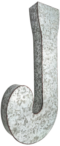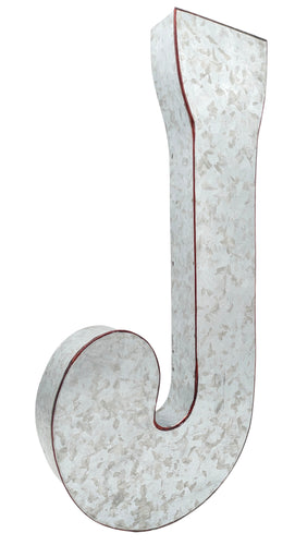Huge 20" Metal Letter J Wall Décor, Silver with Rusted Edges, Galvanized Wall Mountable Decoration for Country, Mid-Century, or Farmhouse Theme