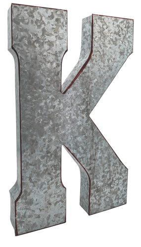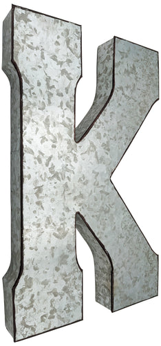 Huge 20" Metal Letter K Wall Décor, Silver with Rusted Edges, Galvanized Wall Mountable Decoration for Country, Mid-Century, or Farmhouse Theme