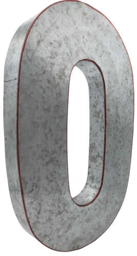 20" Metal Number 0 (Zero) Wall Decor, Silver with Rusted Edges, Galvanized Wall Mountable Decoration for Country, Mid-Century, or Farmhouse Themed Room or Event