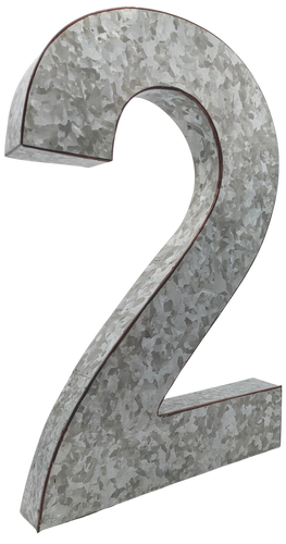 20" Metal Number 2 (Two) Wall Decor, Silver with Rusted Edges, Galvanized Wall Mountable Decoration for Country, Mid-Century, or Farmhouse Themed Room or Event
