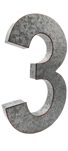 20" Metal Number 3 (Three) Wall Decor, Silver with Rusted Edges, Galvanized Wall Mountable Decoration for Country, Mid-Century, or Farmhouse Themed Room or Event