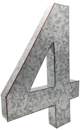 20" Metal Number 4 (Four) Wall Decor, Silver with Rusted Edges, Galvanized Wall Mountable Decoration for Country, Mid-Century, or Farmhouse Themed Room or Event