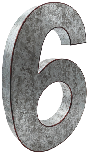 20" Metal Number 6 (Six) Wall Decor, Silver with Rusted Edges, Galvanized Wall Mountable Decoration for Country, Mid-Century, or Farmhouse Themed Room or Event