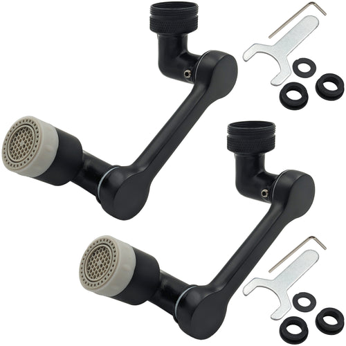 2 Pack Multi-Angle Rotating Faucet Extender and Aerator with Low and High Pressure Modes, Matte Black Finish, Suitable for Kitchen or Bathroom Sink