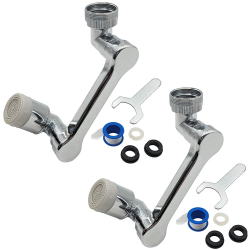 2 Pack Multi-Angle Rotating Faucet Extender and Aerator with Low and High Pressure Modes, Chrome Finish, Suitable for Kitchen or Bathroom Sink