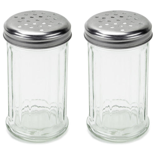 2 Pack 12 Ounce Multi-Purpose Spice Seasoning Grated Cheese Shaker Retro Dispenser, Glass Jar, Perforated Stainless Steel Lid