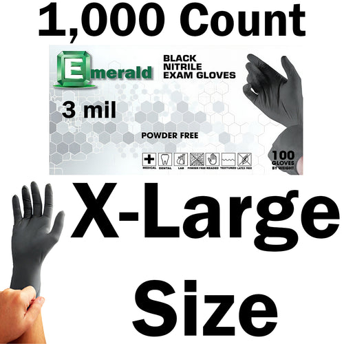 1,000 Count SIZE X-LARGE Powder-Free Nitrile Gloves, 3 Mil, Food Grade, Disposable (Black Color)