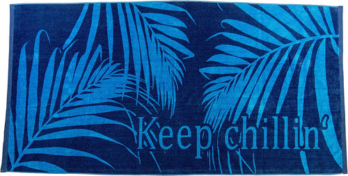 Friends & Home Blue Keep Chillin' Velour Beach Towel (100% Cotton, 36" x 70", GSM 400)