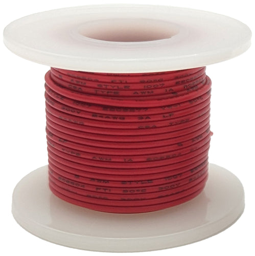 25 Feet Red 24 Gauge Solid Hook-Up Wire, Tinned Copper, PVC Insulation (Shade May Vary)