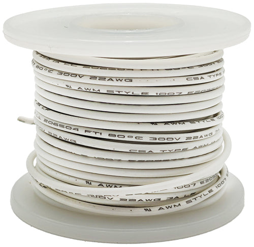 25 Feet White 22 Gauge Solid Hook-Up Wire, Tinned Copper, PVC Insulation (Shade May Vary)