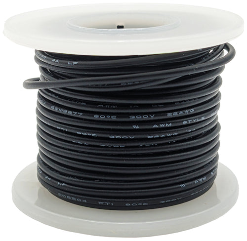 25 Feet Black 22 Gauge Solid Hook-Up Wire, Tinned Copper, PVC Insulation (Shade May Vary)