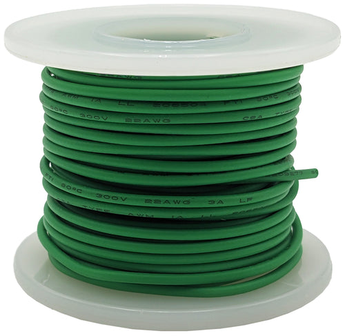 25 Feet Green 22 Gauge Solid Hook-Up Wire, Tinned Copper, PVC Insulation (Shade May Vary)