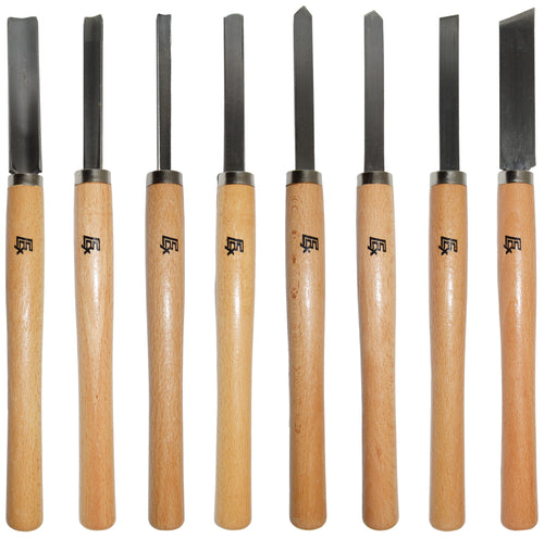 8 Piece Wood Chisel Woodworking Lathe Hand Tool Set - Includes Gouges, Skews, Round Nose, Spearpoint, and Parting Chisels