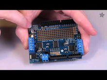 - Lots of other little improvements such as a polarity protection FET on the power pins and a bit of prototyping area. And the shield is assembled and tested so all you have to do is solder on straight or stacking headers and the terminal blocks.
