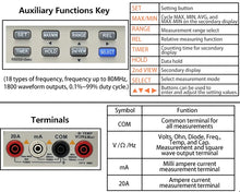 - DCV Range: 80mV/800mV/8V/80V/800V/1000V, ACV Range: 80mV/800mV/8V/80V/750V, DCA Range: 80mA/800mA/8A/20A, ACA Range: 80mA/800mA/8A/20A