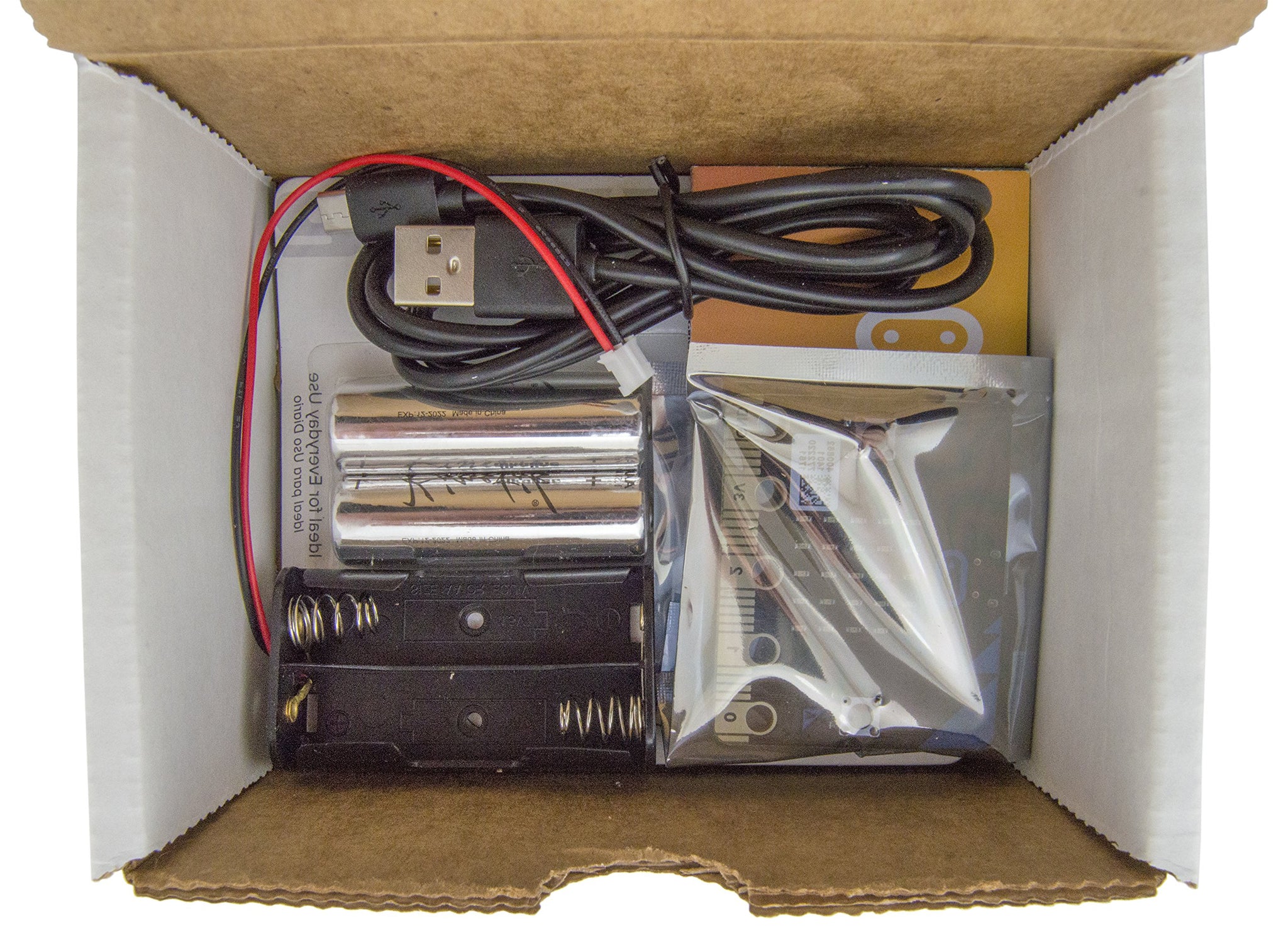 NOTE: The micro:bit can be programmed by connecting it to your computer with a microUSB cable (included) or wirelessly to a phone or tablet via Bluetooth. Use the included battery holder and batteries to power the micro:bit without a computer.