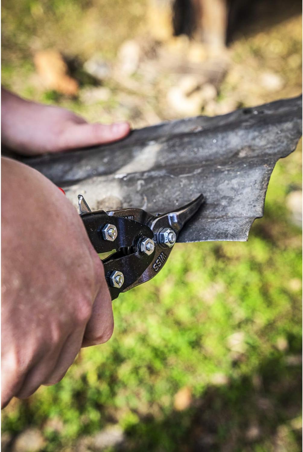 - Cuts left from tight curves to straight with red handles for quick identification