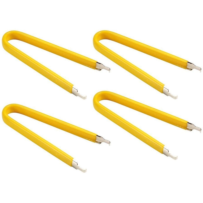 Pack of 4 IC extractors with insulated handles. These chip pullers remove all types of 8 to 40 pin DIPs and ICs without bending pins. Each extractor measures 4 inches long and comes in retail packaging. Sturdy steel construction.