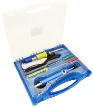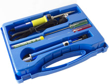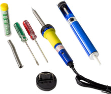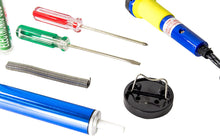 This kit includes a 30W soldering iron, iron stand, solder, desolder pump, Phillips head screwdriver, flat-blade screwdriver, and a convenient storage case that holds all of the items. The entire kit weighs about 1.2 pounds.
