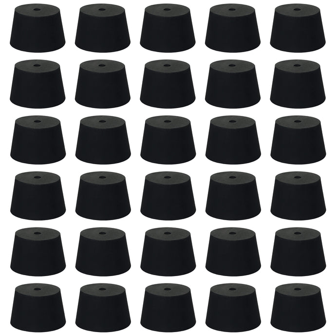 These black stoppers are made of solid natural rubber that stays pliable over a long period of time. Ideal for use with non-aggressive or concentrated solutions. Low sulfur content. Withstand temperatures from –25 to 70°C (–13 to 158°F).