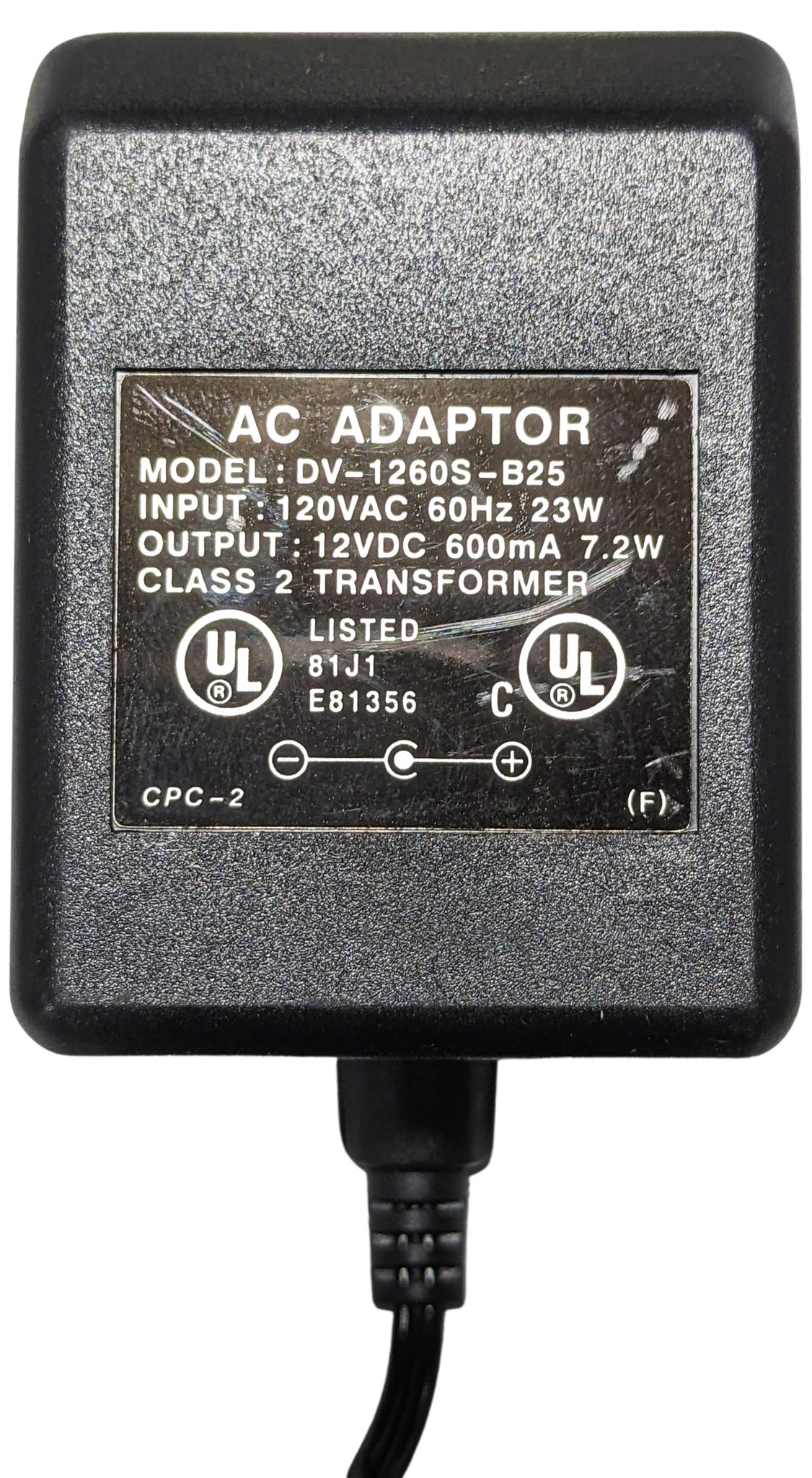 12V 600mA AC DC Adapter, 5.5mm OD / 2.1mm ID, Center Positive (DV-1260S-B25)