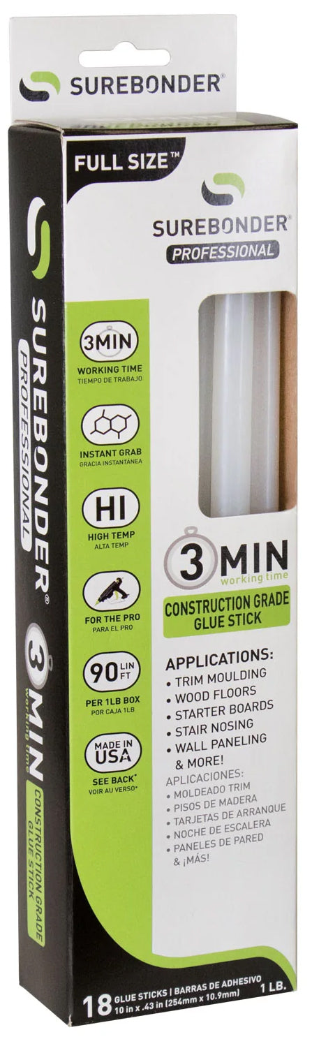 - FULL SIZE GLUE STICKS - These 0.43" (11mm) diameter x 10" long full-size glue sticks are compatible with all full size hot glue guns. For best results, use full-size Surebonder high-temperature glue guns.