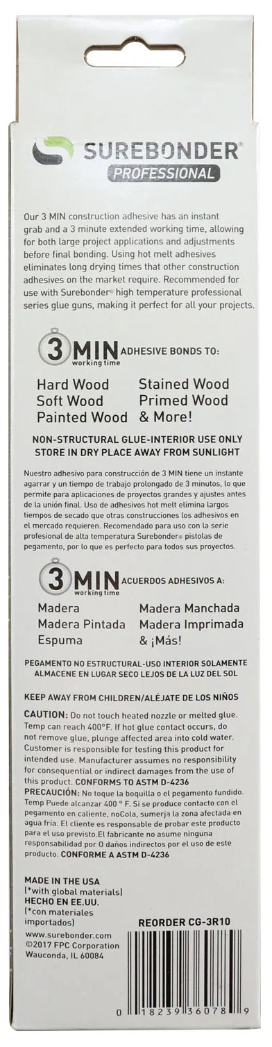- MADE IN THE USA USING GLOBALLY SOURCED MATERIALS - Surebonder glue sticks are proudly engineered and manufactured with globally sourced materials in Wauconda, Illinois.