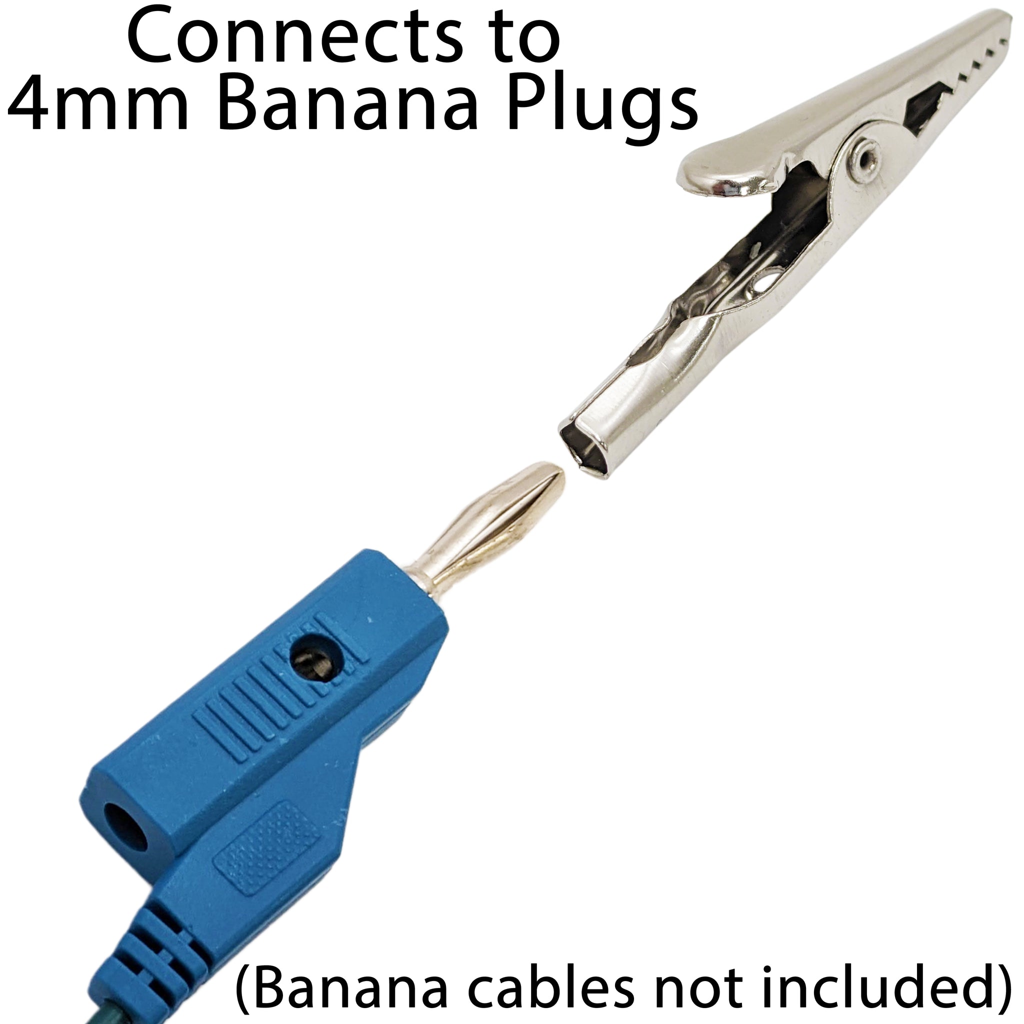 Ideal for a range of electrical testing and do-it-yourself test leads. The barrel can either be connected to a 4mm banana plug or can be soldered / crimped to wire. Featuring a 3/8-inch jaw opening with great spring tension and perfect teeth alignment, the clip provides a strong and reliable hold. Made of nickel-plated carbon steel that is corrosion-resistant.