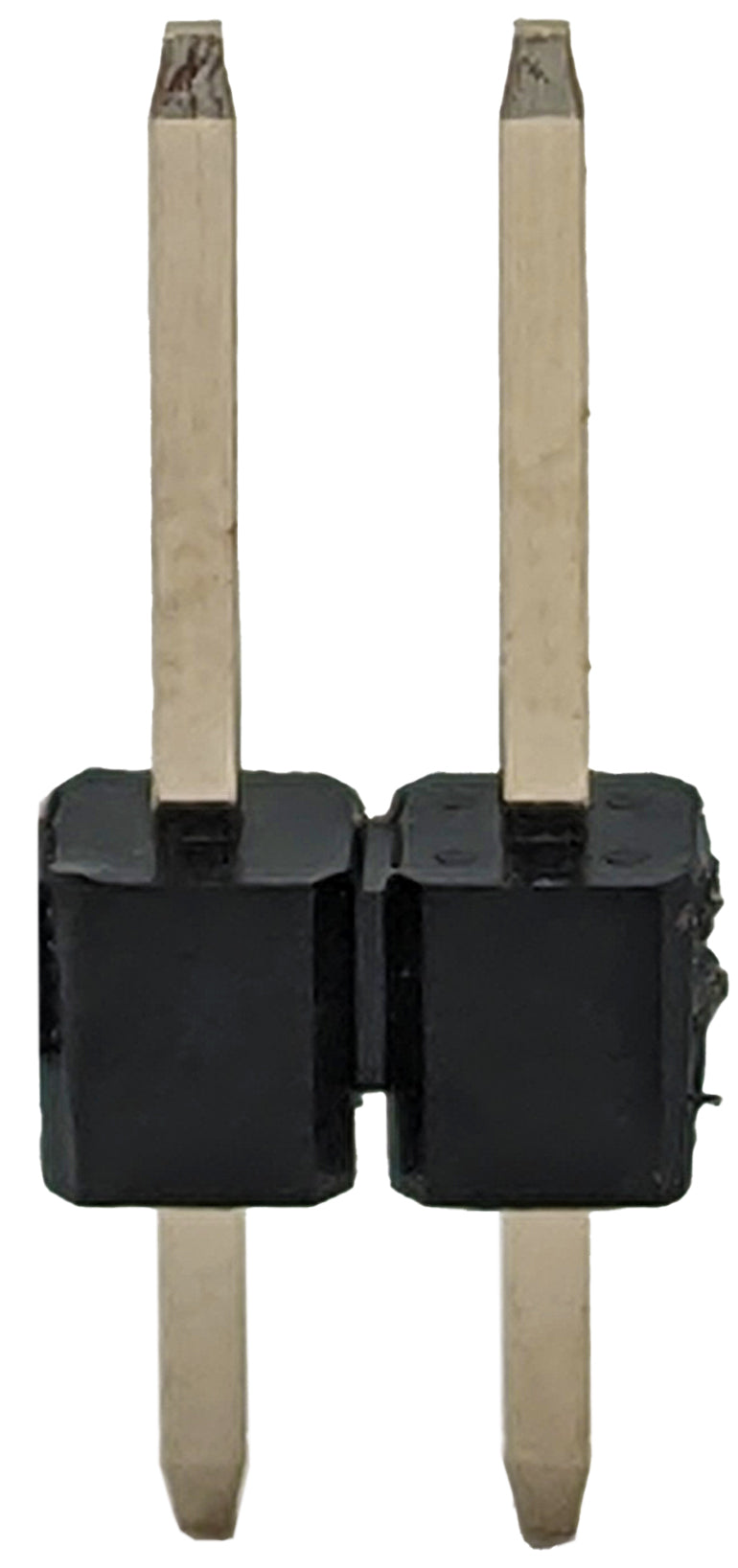 2 Pin Single Row Male Header, 0.025" Square Posts on 0.1" Center