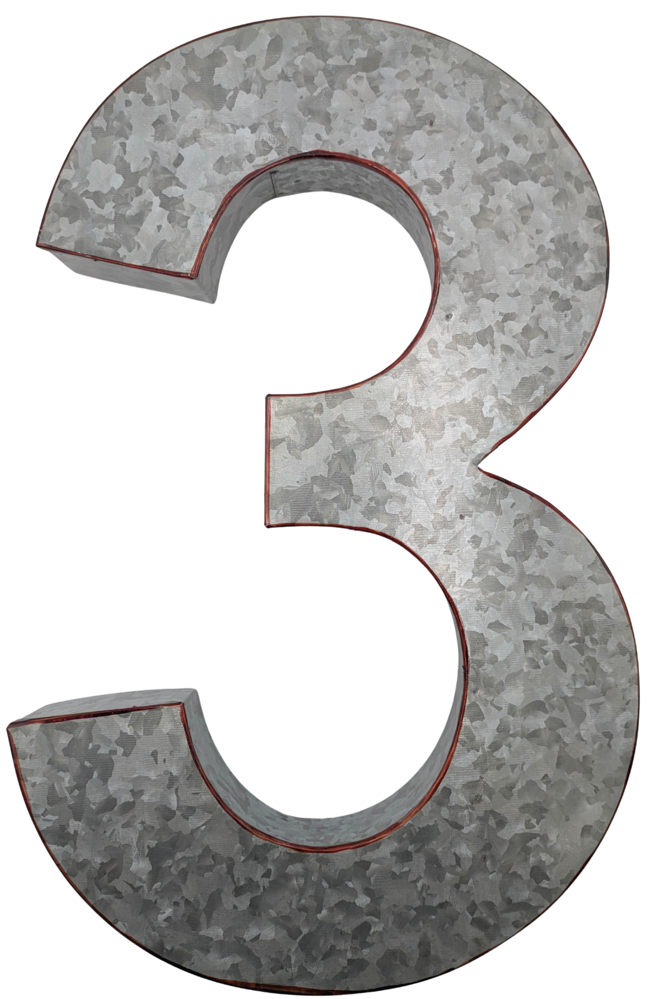 - This 20 inch tall metal number 3 (Three) decoration makes a great addition to your rustic, old country, mid-century, or farmhouse themed home or business
