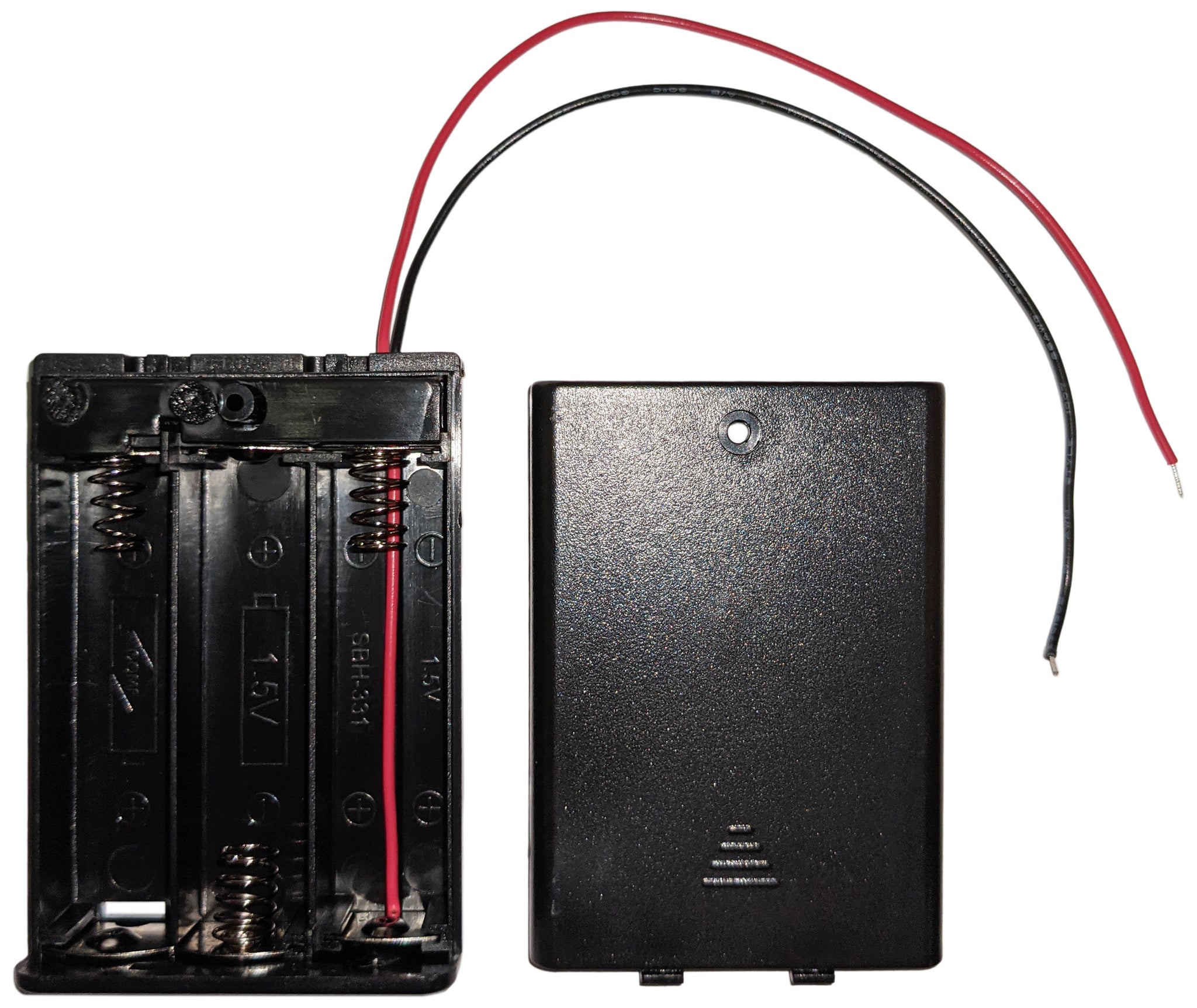 Three AA Battery Holder with on/off Switch, Wire Leads, and Cover