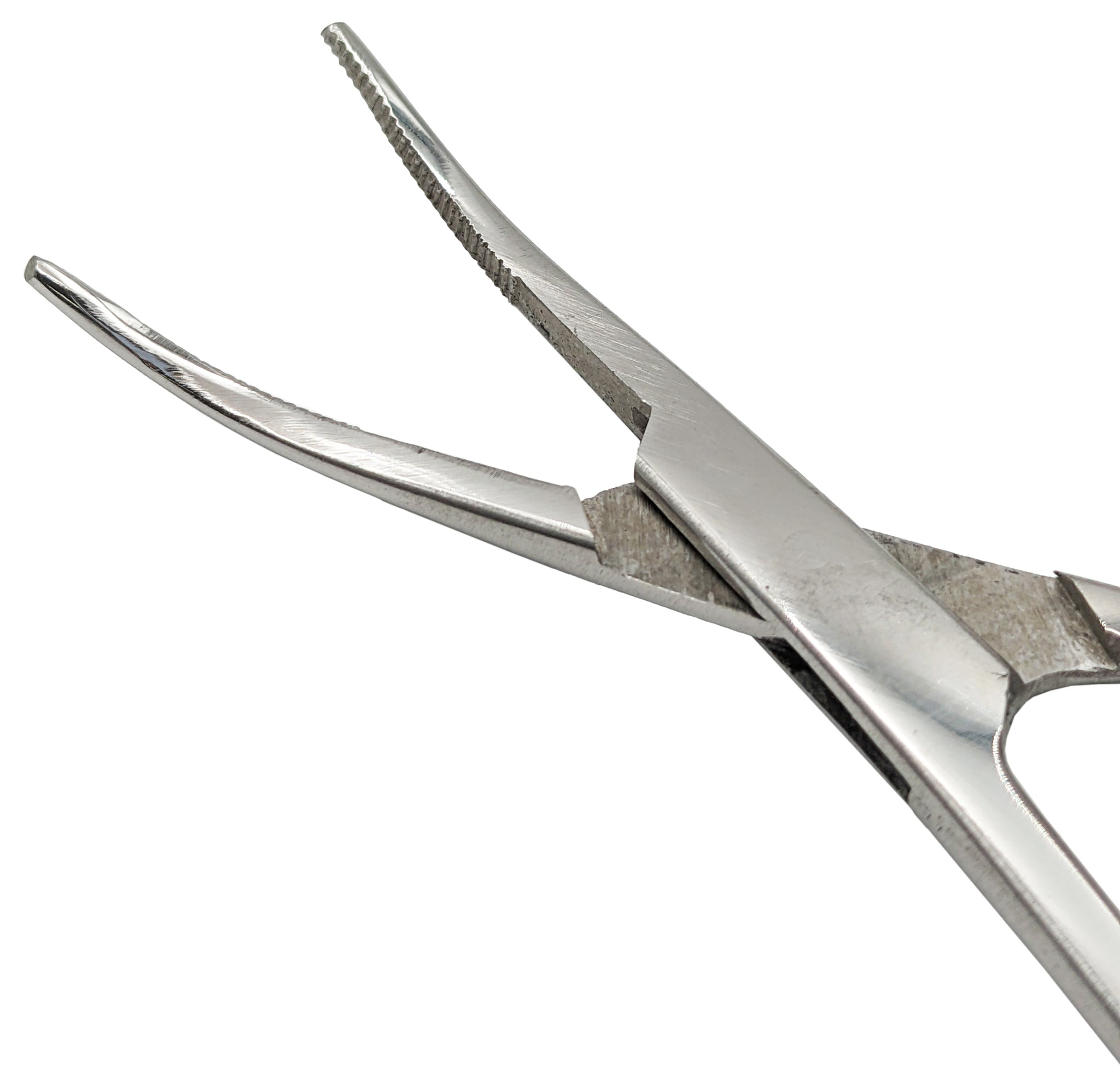 - Hemostat clamp, curved nose with serrated jaws