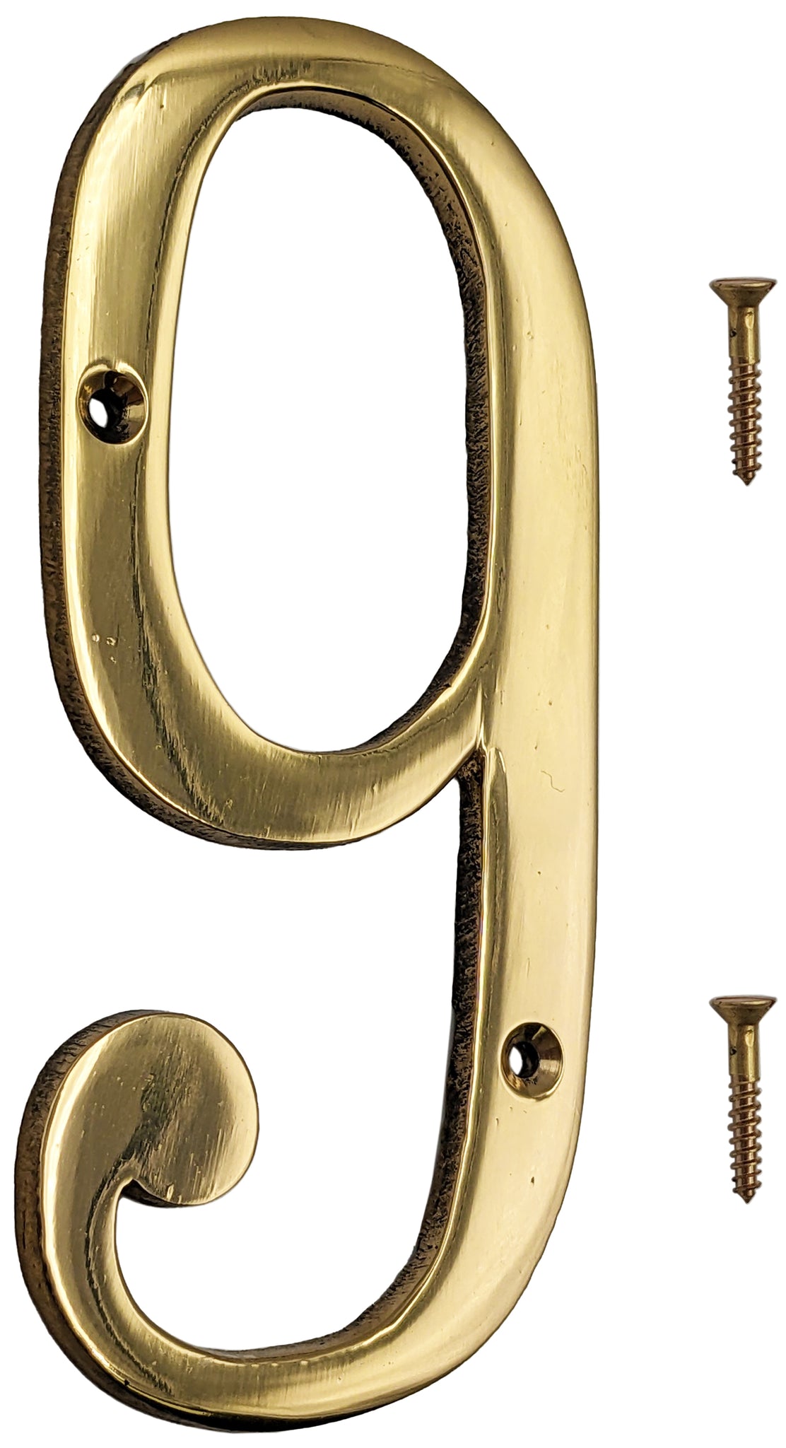 - The number is made of polished brass. It features an elegant, easy-to-read font and a shiny, eye-catching gold color that will make a captivating first impression to neighbors and guests.