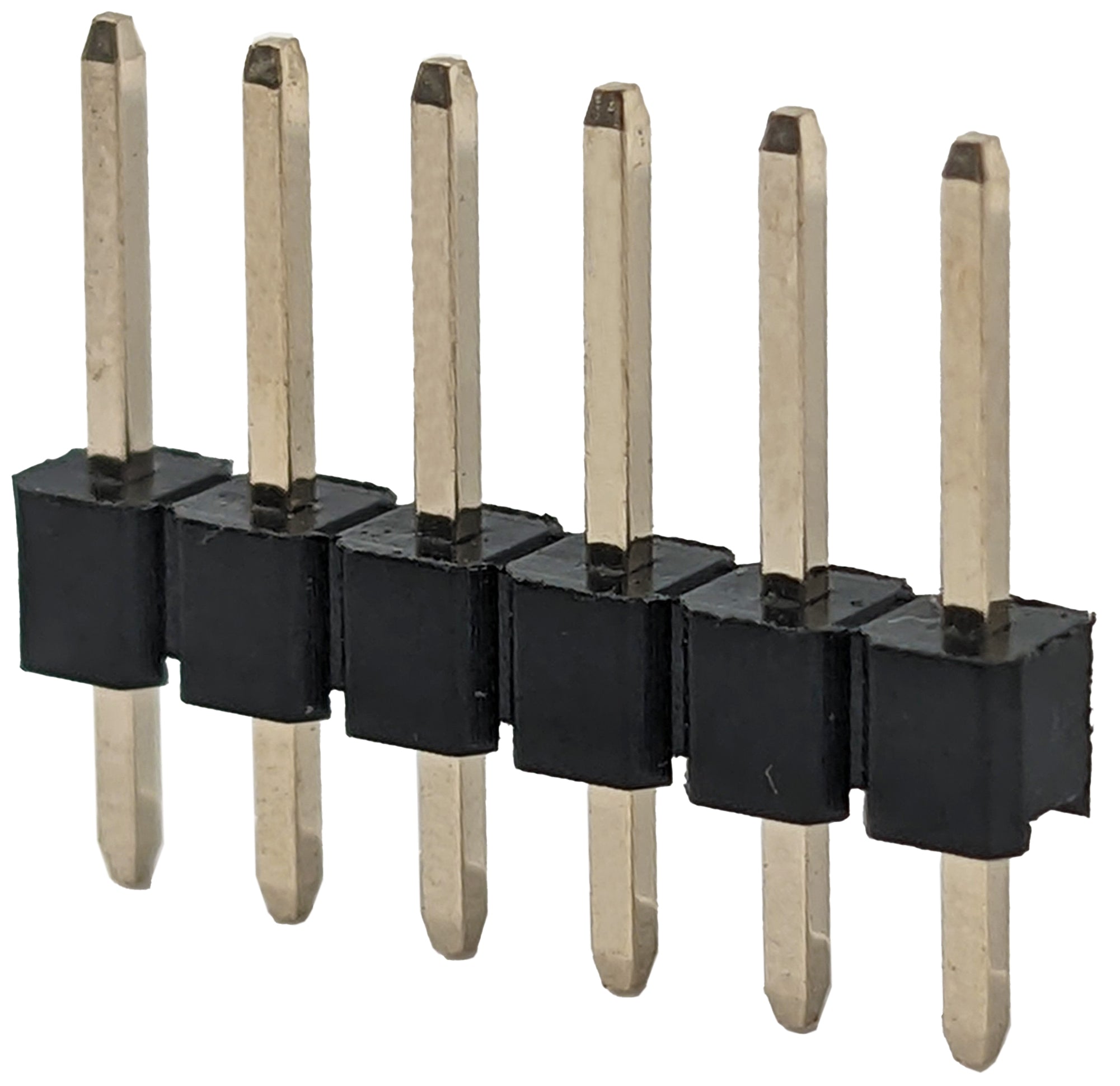 6 Pin Single Row Male Header, 0.025" Square Posts on 0.1" Center