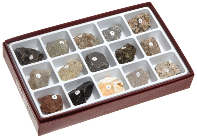 - 15 intrusive and extrusive igneous rock specimens for detailed examination