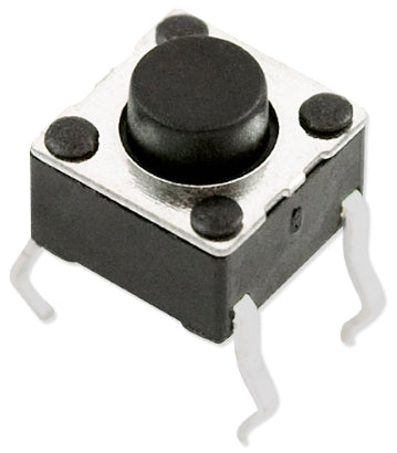6mm Square Tactile Momentary Switch with Round Black Button, Button Height 1.5mm