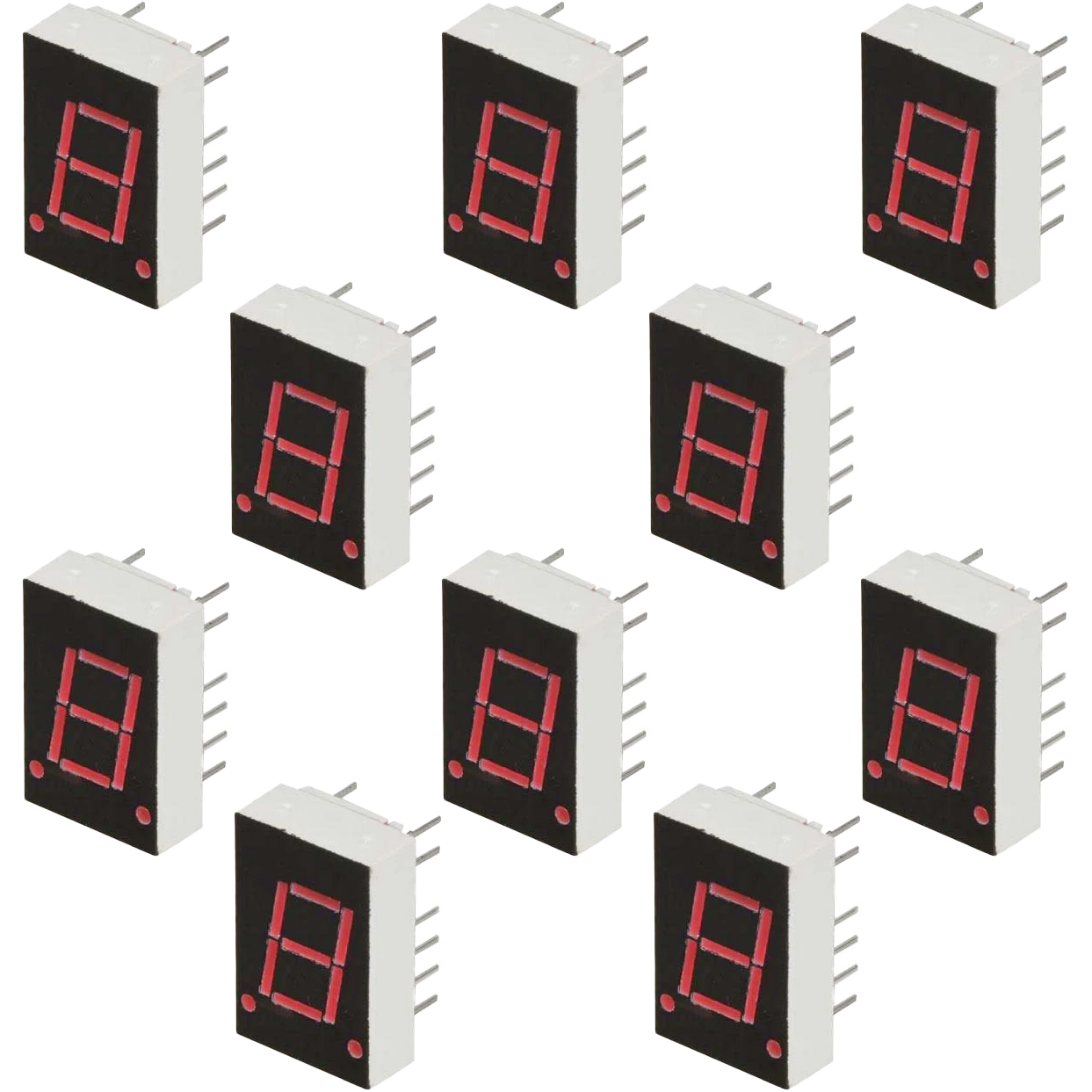 10 Pack Red Common Anode 7 Segment LED Display, 0.3" Digit Height, 11 Leads