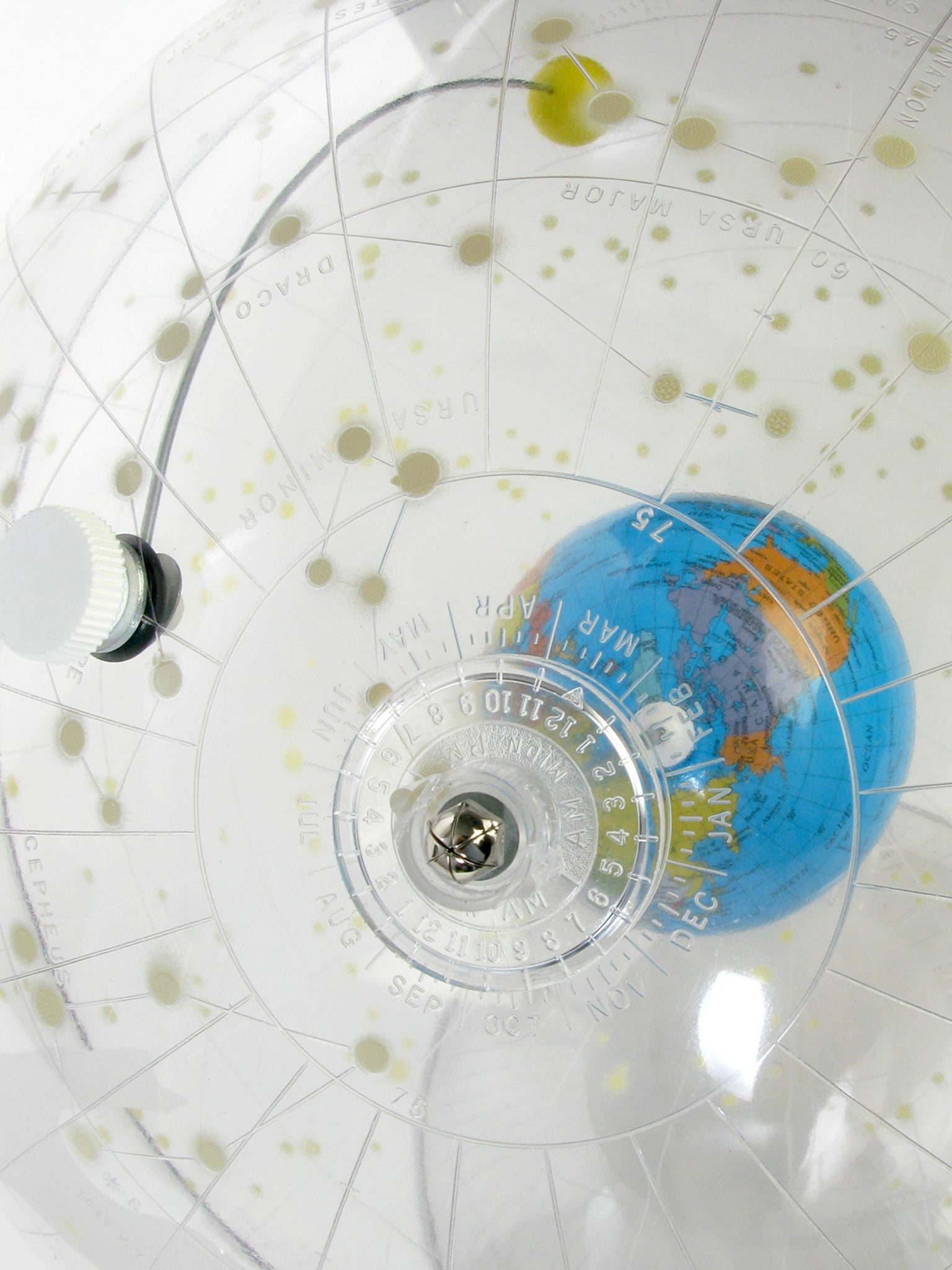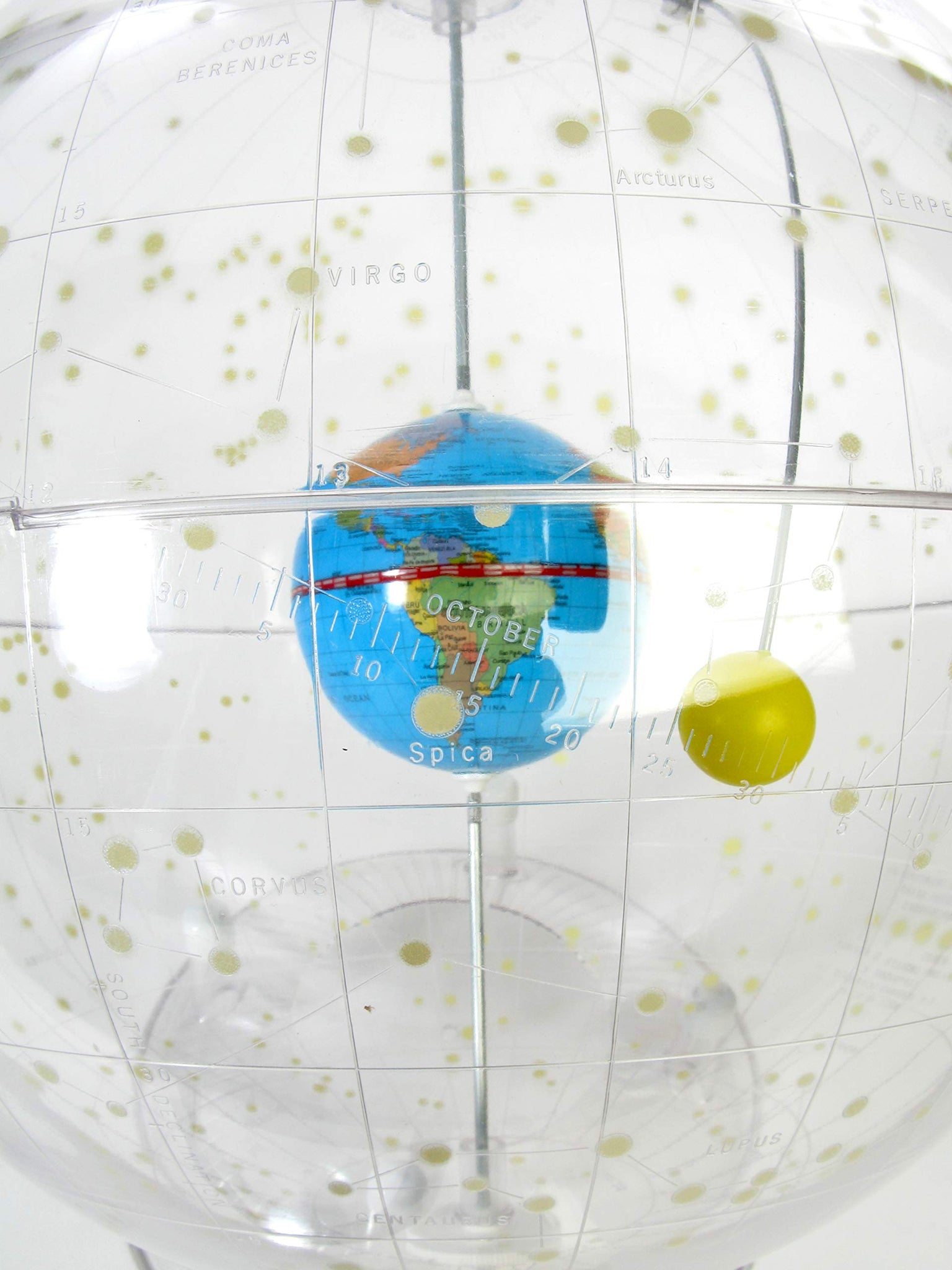 - Printed 4" earth globe and 3/4" yellow sun mounted inside the star globe rotate independently and demonstrate the earth's apparent relationship to the stars, planets, and galaxies
