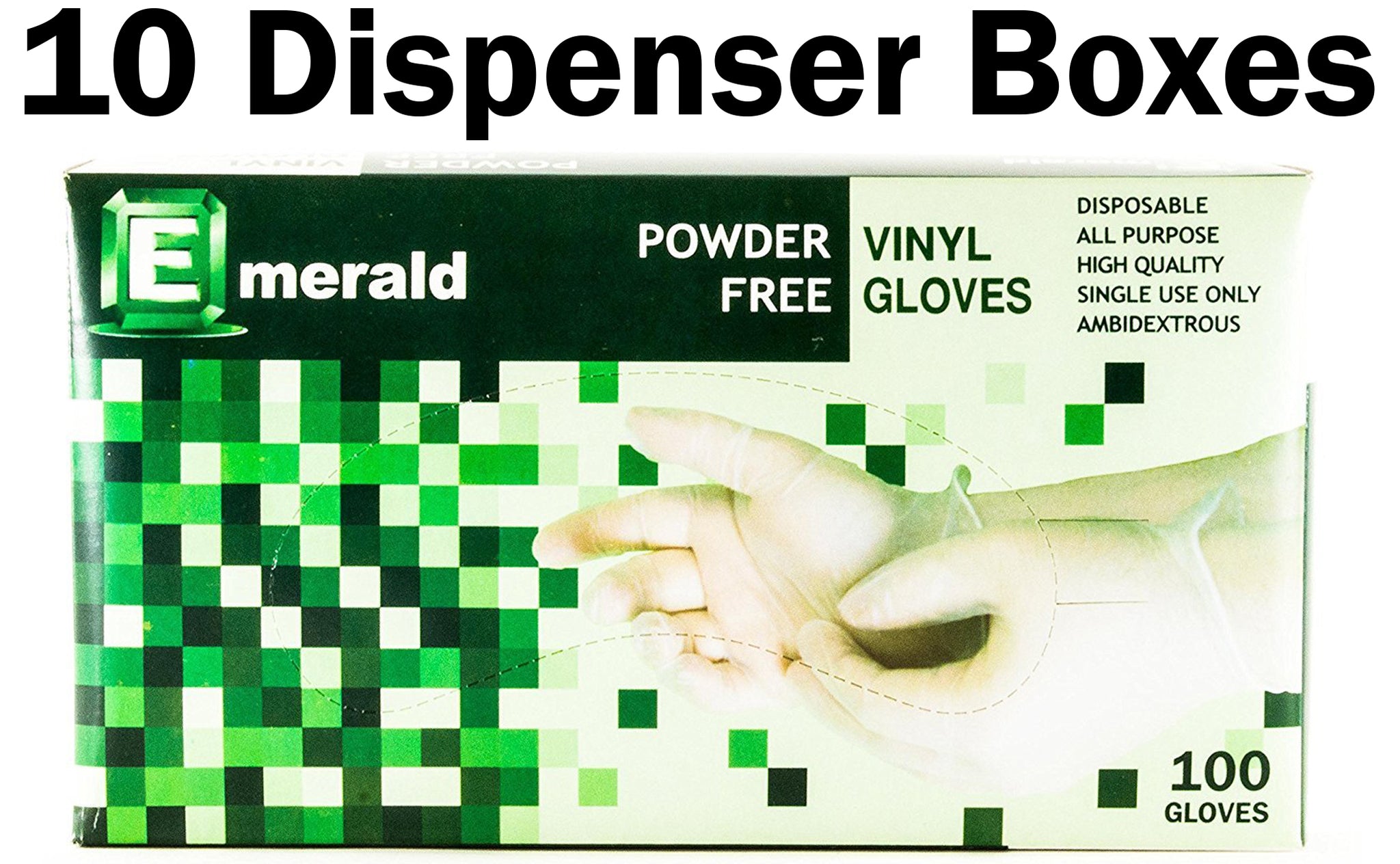 - 1,000 vinyl gloves total (includes 10 dispenser boxes, 100 gloves per box)