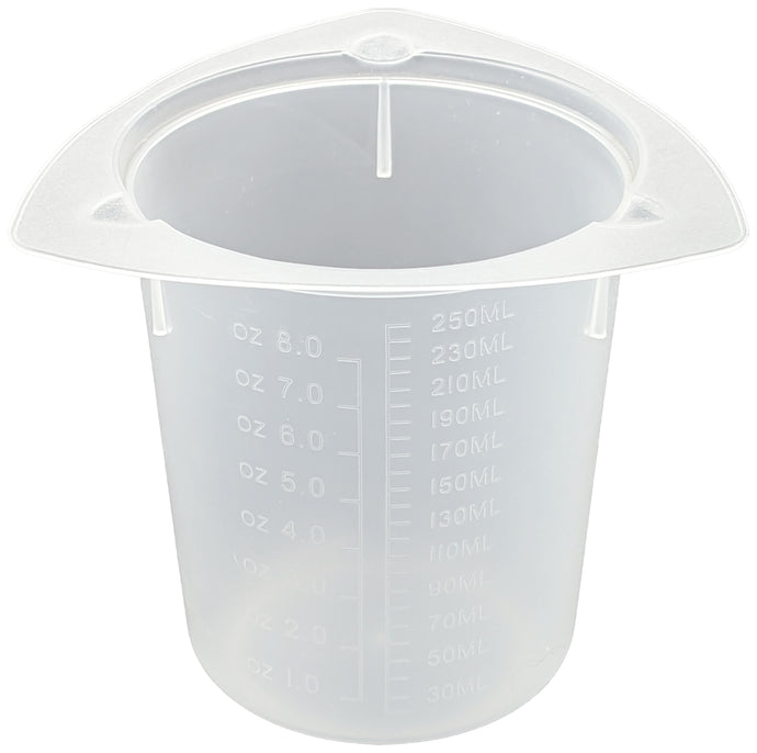 - Disposable 250 ml Polypropylene beaker with special lip design — makes pouring easy and without any spills / fluid running down the side