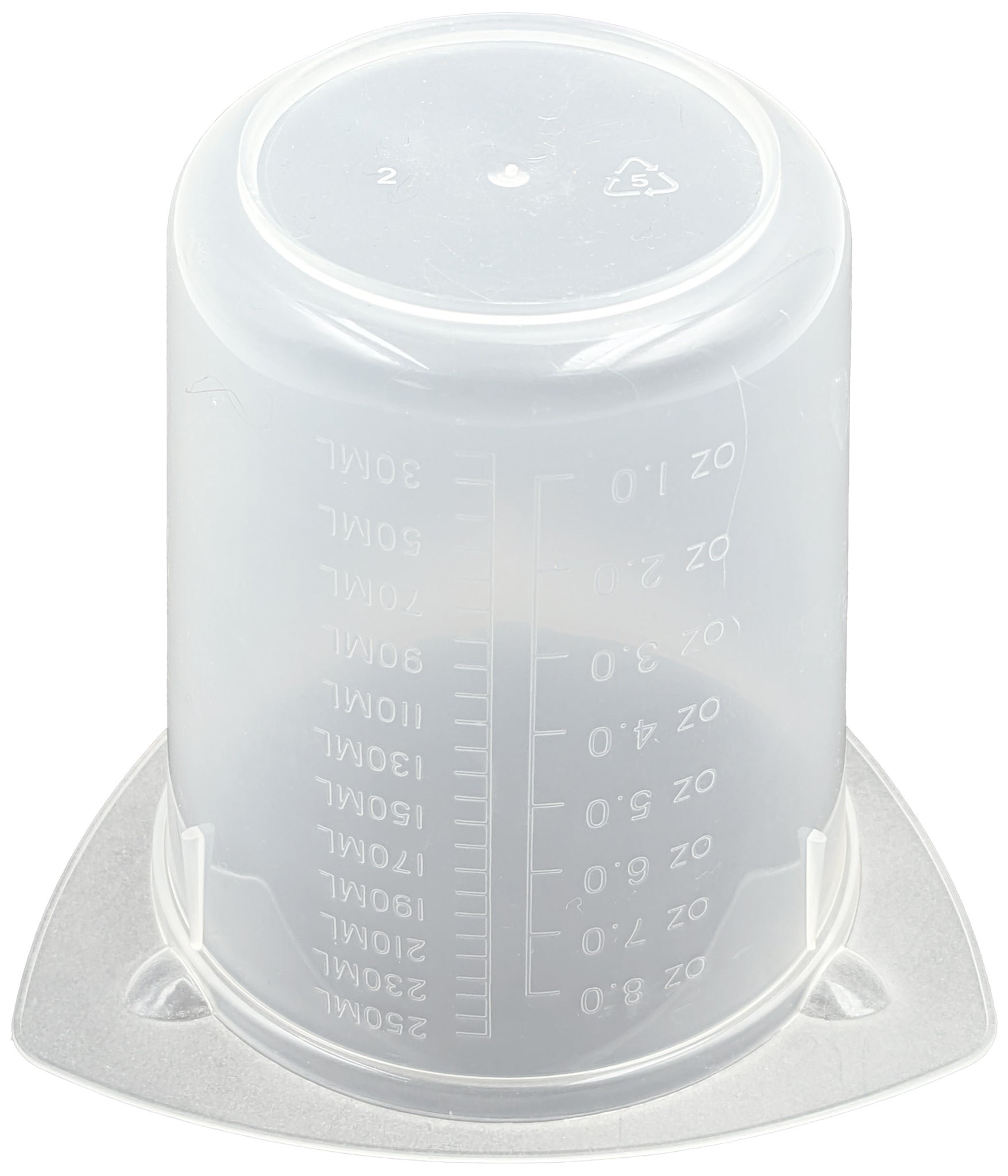 - Graduation marks in 20 mL increments (30 to 250 mL) and in 1 ounce increments (1 to 8 oz)
