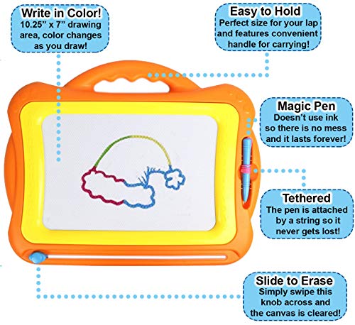 - Write, doodle, or draw anywhere with this fun reusable drawing pad that erases in seconds by sliding the built-in eraser knob